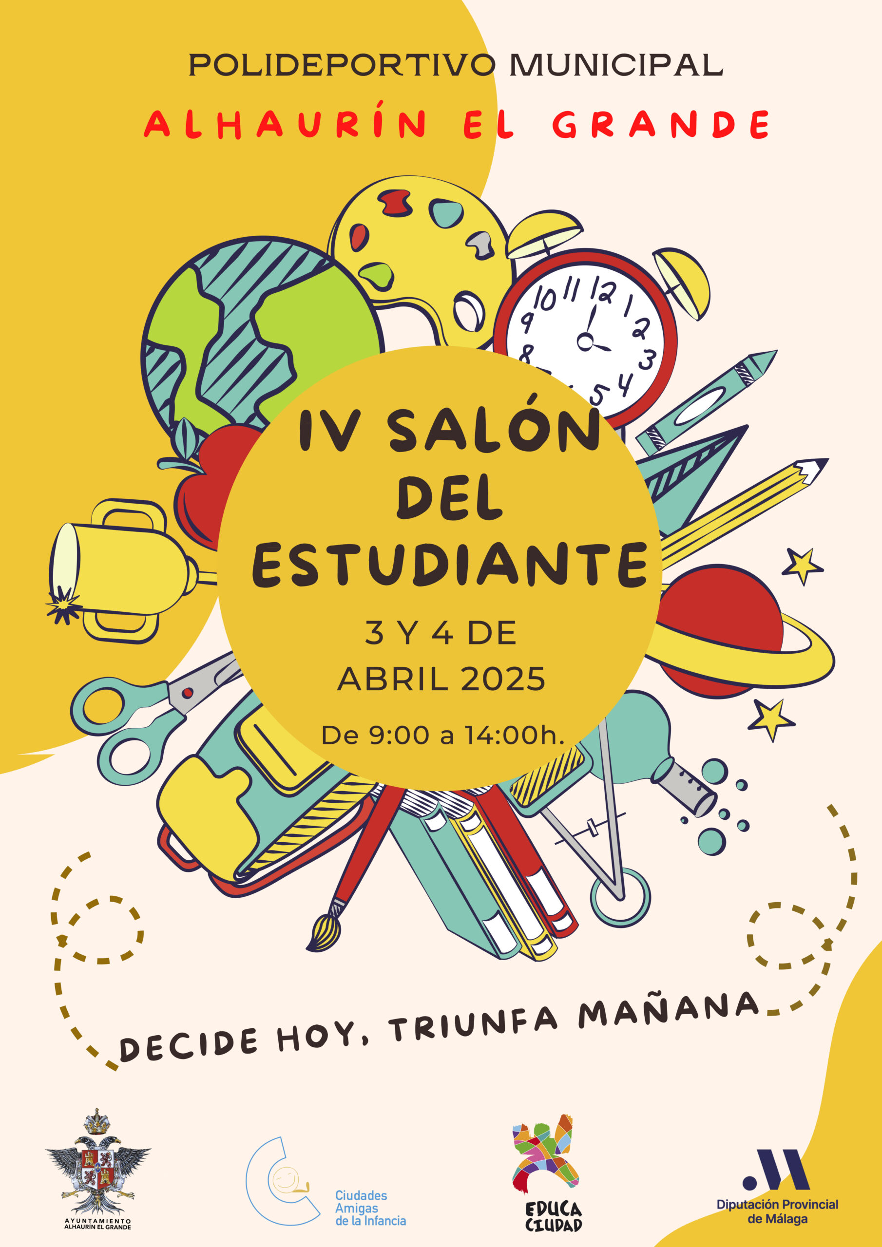 La concejalía de Educación del Ayuntamiento de Alhaurín el Grande presenta la cuarta edición del Salón del Estudiante que se celebrará los días 3 y 4 de abril de 2025, de 09.00 a 14.00 h, en las instalaciones del polideportivo municipal. El alcalde Anthony Bermúdez y la concejala de Educación, Maribel Plaza, junto a las técnicas del área, han presentado esta nueva edición que espera volver a ser un éxito de participación, tanto de alumnos como expositores.