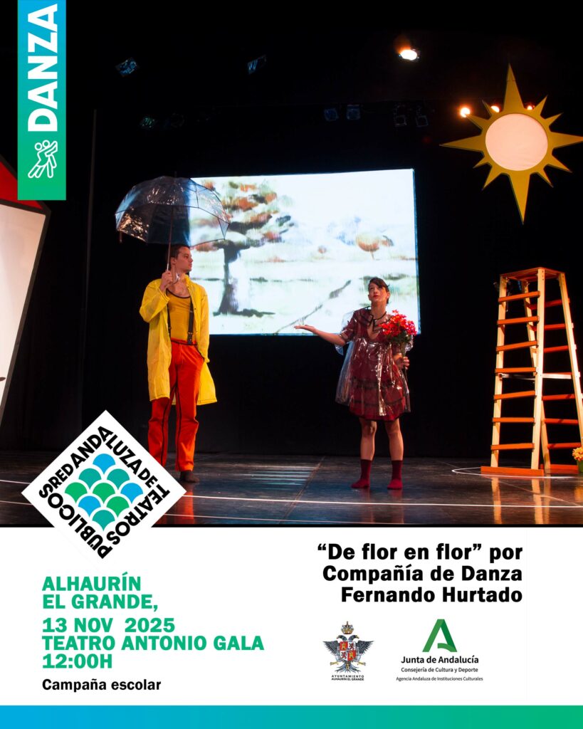 El 13 de noviembre, el Teatro Municipal Antonio Gala acogerá el espectáculo ‘De flor en flor’, de la Compañía de Danza Fernando Hurtado, en una función matinal a las 12:00 horas, dirigida al alumnado de los centros educativos de la localidad. “Se trata de una obra delicada y emotiva que mezcla poesía visual, danza contemporánea y narración simbólica, invitando a los más pequeños a reflexionar sobre el paso de las estaciones, la amistad y el valor de la constancia frente a las dificultades”, explicaba la concejala de Cultura.