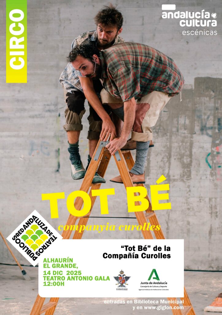 Más adelante, el 14 de diciembre, el público podrá disfrutar de ‘Tot Bé’, de la Compañía Curolles, también incluida en el catálogo de la Red Andaluza. Se trata de una propuesta de circo contemporáneo en la que dos artistas utilizan la peonza tradicional como punto de partida para crear un espectáculo lleno de humor, juego, acrobacias y elementos cotidianos que despiertan la imaginación. “Es un espectáculo visualmente impactante, muy participativo y pensado para públicos familiares”, ha señalado la concejala, quien ha recordado que las entradas, con un precio de 5 euros, ya están disponibles en giglon.com y en la Biblioteca Municipal.