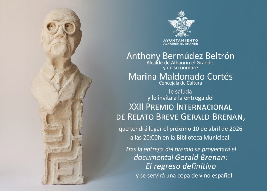 El acto de entrega tendrá lugar en la Biblioteca Municipal y reunirá a escritores, lectores y colectivos culturales en torno a la figura del hispanista Gerald Brenan, estrechamente vinculado a Alhaurín el Grande. La velada se completará con la proyección del documental “Gerald Brenan: El regreso definitivo” y un encuentro posterior que favorecerá el intercambio cultural.