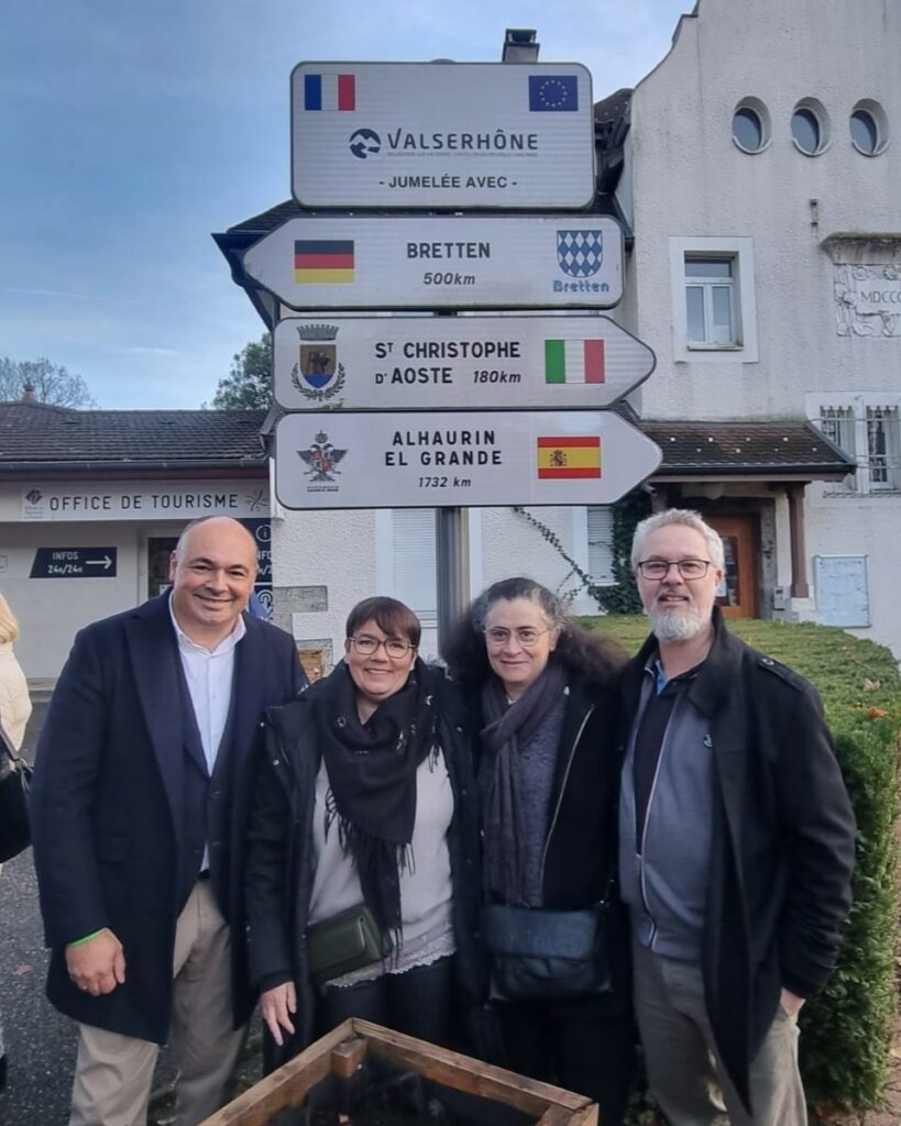 El acto, celebrado en Valserhône, comenzó con la inauguración de una señal que indica la dirección hacia Alhaurín el Grande y los otros dos municipios hermanados con la localidad francesa: Bretten (Alemania) y Saint-Christophe d’Aosta (Italia). Esta señal, que marca los kilómetros de distancia a los que se encuentran cada uno de los municipios, ha sido inaugurada frente a la oficina de turismo de la ciudad y se erige como símbolo tangible de los lazos de hermanamiento que unen a estas localidades y de la importancia de estos intercambios culturales y sociales.