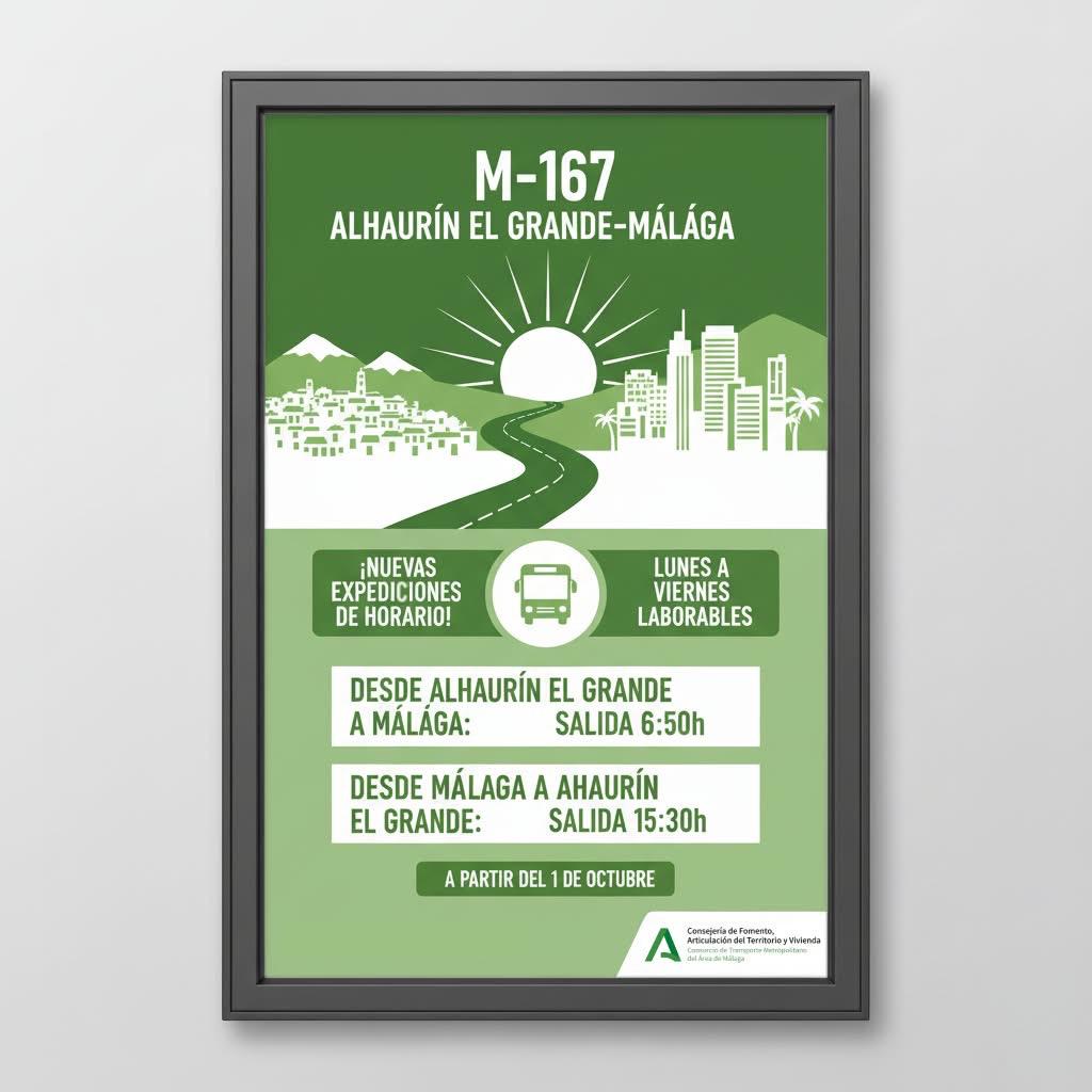 El Ayuntamiento de Alhaurín el Grande, a través de su Área de Movilidad y en colaboración con el Consorcio Provincial de Transportes de Málaga, ha anunciado la ampliación de la línea de autobuses M-167, que conecta el municipio con Málaga pasando por Cártama.