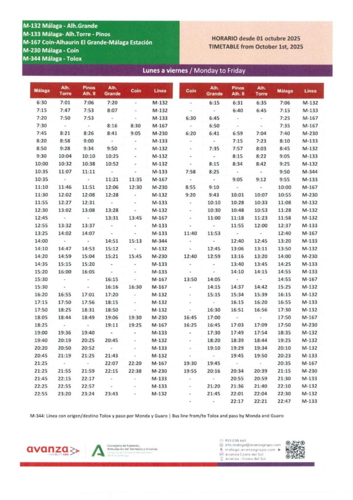 Además, se han adaptado los horarios de la línea M-132 Alhaurín el Grande – Málaga (vía Alhaurín de la Torre) para ofrecer una mejor conexión a los usuarios.